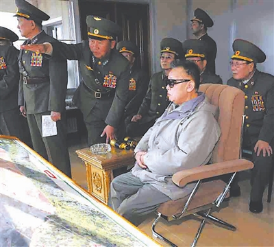 这张朝鲜中央通讯社4月14日提供的照片显示,朝鲜最高领导人金正日近日观看人民军567部队的综合军事演习。他表示确信人民军官兵一定能用武装捍卫国家主权和人民幸福。新华社/朝中社