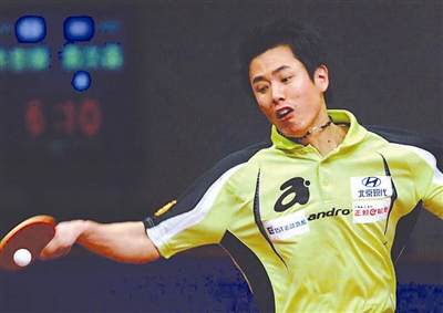 4月15日,亚洲队的韩国选手朱世赫在比赛中。当日,在2010亚欧乒乓球全明星对抗赛中,朱世赫以1比3不敌欧洲队的瑞典选手佩尔森。新华社记者 公磊 摄