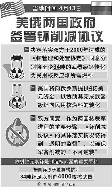 4月8日,美俄签署了新的核裁军条约,两国将进一步削减核弹头数量和战略武器运载工具数量。