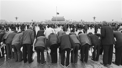 4月21日,48位在京青海人自发来到天安门广场致哀。本报记者 于文国 摄