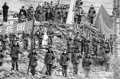 4月21日,参加玉树震区哀悼活动的解放军救援官兵。本报记者 杨登峰 摄