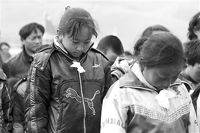 4月21日,玉树震区哀悼活动现场的学生代表。本报记者 杨登峰 摄