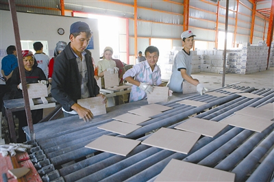 依托阿克莫木气田供应的天然气,喀什及周边县城能源消费结构的调整逐渐加快,空气污染程度逐年下降,城市的工业和商业设施的现代化改造也开始稳步推进。远东陶瓷是2007年通过招商引资进入喀什工业园区的一家企业,是喀什地区天然气的最大用户,日均消耗天然气7万立方米。厂长刘祥总看着瓦蓝色的火苗兴奋地说:“你瞧,多方便,火候也好掌握,感谢塔里木油田给我们企业发展送来的‘福气’。”利用塔里木油田阿克莫木气田的天然气资源优势,喀什紧紧围绕“打造喀什在中、南亚经济圈重心地位”战略,以家庭用户为基础,以商业客户为发展重点,先后促成了雅戈尔织布、远东陶瓷等一批有影响的大客户在喀什落户建设,使天然气产业成为喀什地区一个新的经济增长点。