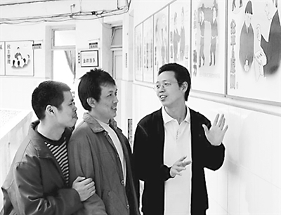 “五一”前夕,重庆能源集团打通一矿掘进三队员工苏明华以班组生产岗位特色、管理思路、员工行为、班组生活等为素材,以“公平,民主,协作,和谐”为主题,创作出写实漫画张贴在员工每天上下班经过的走廊里。“看,奖金分配,一目了然!”班长李天勇(左)说。这种直击问题、宣传先进的写实漫画无疑起到目视管理的作用,引得许多外单位人员来参观、学习。张静 杨兴斌 摄