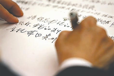 4月27日下午,在劳模座谈会上,贵州劳模张明富边听发言边写出自己的心得。