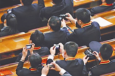 4月27日上午,参加表彰大会的劳模们用各自手中的相机记录下难忘时刻。