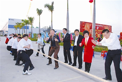 许淑清董事长等集团领导为联欢会结束后举行的拔河比赛加油