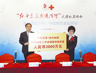 许淑清董事长(右一)代表中恒集团首期捐赠3000万款物成立中恒博爱基金
