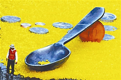 5月1日在韩国首尔,一名宣明会志愿者在巨型勺子和硬币仿制品前为救助儿童募捐。世界宣明会是一个国际救援机构,以儿童紧急性援助为重点,在包括中国在内的全球约100个国家开展工作,帮助一亿人脱贫。阿健 供图