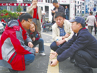 贵州移动总经理张宏森一行在都江堰地震灾区与四川移动相关领导商讨通信抢修措施