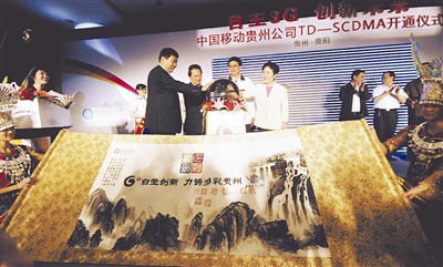 贵州省领导与贵州移动总经理张宏森(左一)共同开启贵州3G时代