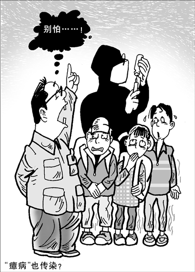 事情总有点惊人的相似:广东揭阳市惠来县岐石镇坑仔学校46名小学生4月22日在接受乙肝疫苗后出现不适症状,广东省卫生厅4月23日表示,根据该厅联合调查组初步调查,认为事件疑似群体性心因性反应(即群发性癔病)引起,与疫苗无关,目前所有不适症状学生均康复出院。接种疫苗引发“癔病”,闻农药也引发“癔病”。难怪网友写对联叹之——上联:说你癔你就癔不癔也癔。下联:说你不癔你就不癔癔也不癔。横批:随意。