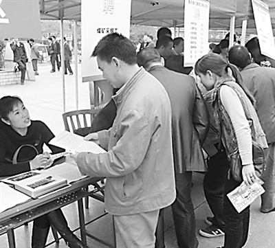近日,在重庆永川区举行的“人大代表在行动——促千人就业”暨企业现场招聘会上,重庆能源集团永荣矿业公司一次性拿出500个岗位,满足本地农民工在家乡就业的愿望,中心桥煤矿等3家煤矿更以月薪3000元~5000元以及“五金”保障、年休假等多项优惠条件,吸引农民工报名和咨询。月闻 摄