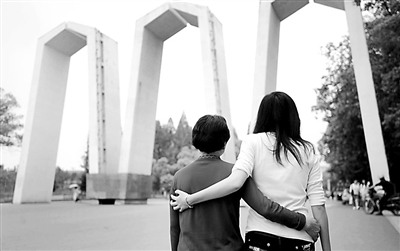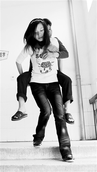 罗桂红背着母亲走在湘潭大学里。 新华社记者 李尕 摄
