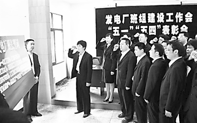 “做到公平公正,凝聚全班力量,夯实管理基础,确保安全生产,为实现‘千百亿’战略目标而努力奋斗。”在有了入党誓词、安全誓词之后,重庆能源集团松藻电厂又有了“班长誓词”。5月1日,当25名班长第一次面对“班长誓词”庄严宣誓并在誓词上郑重签名后,普遍感到班长工作神圣而重要,对在班组筑牢安全篱笆,杜绝违章指挥、违章作业、搞好安全管理等,有着责无旁贷的责任。 陈莉娅 贺禧 摄