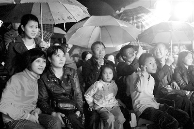 5月6日晚,蓥峰水泥公司员工及家属在冒雨观看文艺演出。当日,5·12大地震灾后重建重点扶持项目华蓥山广能集团蓥峰水泥公司干法水泥生产线的文艺爱好者,冒着纷飞的春雨,为公司的员工及家属表演自编自创的文艺节目,以此纪念汶川大地震两周年,展示公司员工在灾后重建中乐观向上、奋发图强、谋求跨越的精神风貌。