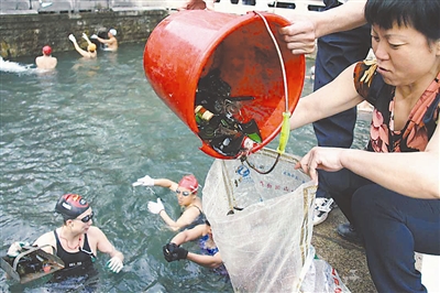 5月9日,济南市民自发跳入泉池内清理玻璃渣。