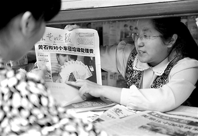 5月5日,残疾女青年陈原正在报亭里为顾客热情服务。