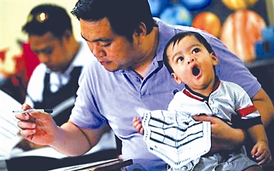 5月10日,菲律宾举行该国建国以来首次“自动化选举”,在5000万有资格投票的选民中,预计超过8成选民参加了投票。图为当天在大马尼拉地区圣胡安市一所小学设立的投票站里,一位抱孩子的父亲正在填写选票。 谢涛 供图