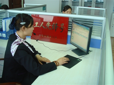 图为座席员魏娜正在接受客户咨询。(李洪涛 摄)