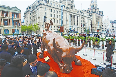 5月15日,上海的名片地区外滩添了一座新“地标”——备受关注的“金融牛”正式落户外滩金融广场。