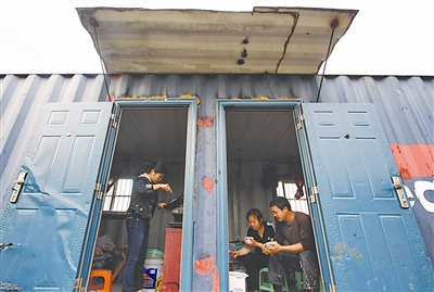 在高房价的压力下,利用集装箱改建房屋,似乎成了低收入人群一个不错的选择。而这些“蜗居”在集装箱里的人们,一不小心也被人冠上了“柜族”的称号。在浙江省台州市路桥区螺洋街道南山村附近的道路两旁,就散布着一些由集装箱改建的房屋,居住着不少“柜族”。 潘侃俊 摄
