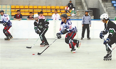 四体会男子单排轮滑球:北京队以17比0战胜澳门队。 新华社记者 燕雁 摄