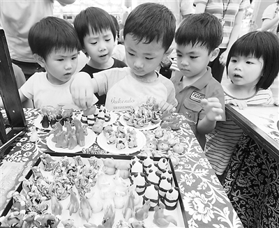 5月21日,台湾小朋友在台北举行的成都大庙会上观看面塑。