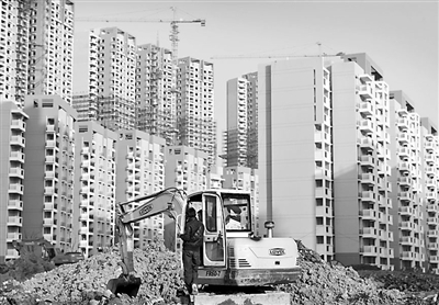 1月14日,南京一处经济适用房开发建筑工地上建筑工人在盖楼。安心 摄