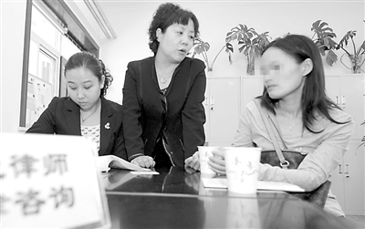 5月19日,在陕西省妇联妇女儿童维权服务中心,律师在向一位前来咨询的妇女解答相关政策。