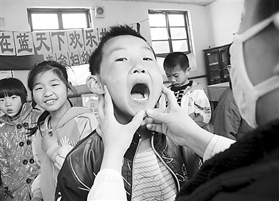 5月24日,北京市丰台区妇幼保健院的医务人员为振华民生学校的学生进行口腔检查。丰台区妇幼保健院将“健康大篷车”开进流动人口较集中的地区,为打工人员子弟进行免费体检及健康指导,并根据其户籍进行相关数据分析,开展体质调研。章华 摄(新华社发)