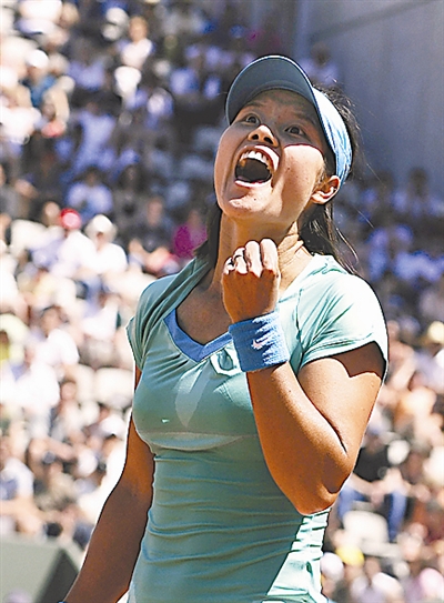 5月24日,中国选手李娜在比赛中庆祝得分。当日,在2010年法国网球公开赛女单首轮比赛中,中国选手李娜以2比0战胜法国选手姆拉德诺维奇,晋级下一轮。