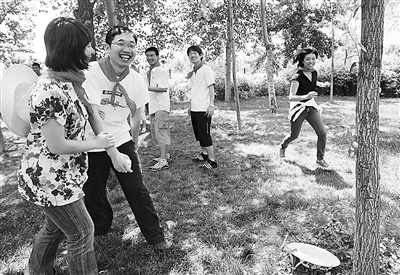 5月30日,北京奥林匹克森林公园,某网站的20多名网友相聚在一起做游戏,重温“六一”儿童节。随着网络的发展,人与人之间的沟通发生了革命性的变化,但同时也存在使人们之间面对面交流的机会越来越少,沟通行为趋向单一化等问题,最主要的是使人们相互之间的信任感降低。参加此次活动的网友就是希望通过这种见面的方式增进相互的了解和信任。