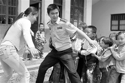 5月25日,湖南省中方县公安局新建派出所民警来到新建乡黄金村小学与在校学生开展迎“六一”联欢活动。该村级小学是全乡留守儿童最多的小学,在校学生95人,留守儿童就占81人。在“六一”到来之际,为让孩子们感受到社会和家庭的温暖,民警来到学校与孩子们边做游戏边讲解安全知识。