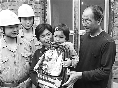 5月29日,河南省平顶山市石龙区供电公司工会为特困职工温东亮的孙女送去了书包和学习用具。两年前,温东亮父子相继被诊断为肺癌和白血病,儿子病逝后,家庭十分困难,该公司工会了解情况后,多方给予帮助,两年多累计为其发放救助金2万多元。