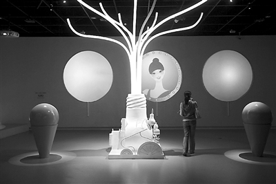 一名游客在上海世博会博物馆“灯光树”展厅参观(5月17日摄)。新华社记者李俊东摄