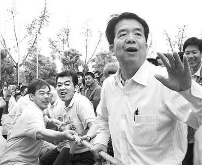 姚文琛担任拔河比赛裁判 王品熙 摄