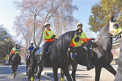 6月7日,几名骑警在约翰内斯堡埃利斯公园球场附近巡逻。