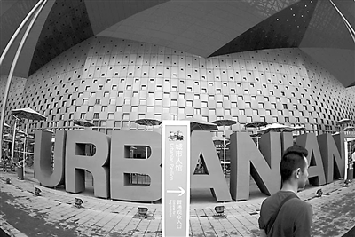 一名参观者从“城市人馆”外经过(5月18日摄)。 新华社记者 郭磊 摄