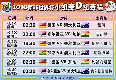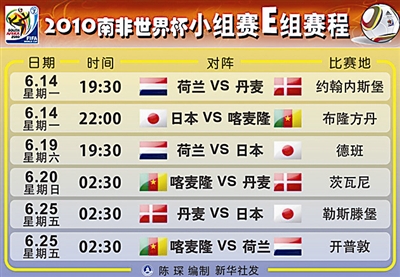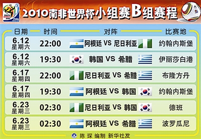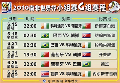 世界杯小组赛赛程 (以下时间均为北京时间)