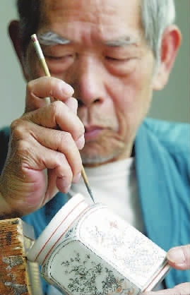 在6月9日北京举办的“巧夺天工——中国非物质文化遗产百名工艺美术大师技艺大展”上,这位擅长广彩人物、花卉、动物的工笔图案的国家级非物质文化遗产项目代表性传承人余培锡,在继承传统花式的基础上,吸收各种中外艺术精华和现代生活题材,不断地设计新花式,迄今已独立创作设计新花式600多件(套),授徒500多人。
