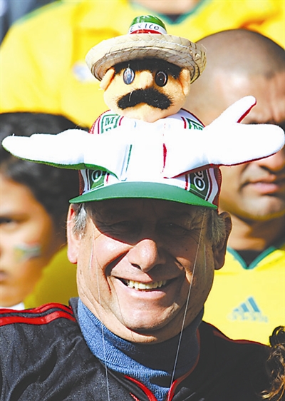 6月11日,2010南非世界杯开幕式在约翰内斯堡足球城体育场举行。这是一名墨西哥队球迷在开幕式现场。