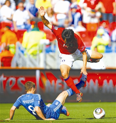 6月12日,韩国队2比0战胜希腊队,为亚洲球队取得本届世界杯开门红。新华社记者 廖永杰 摄