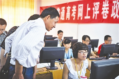 6月13日,在确保高考保密安全的前提下,甘肃省教育部门邀请6名学生家长和省人大、省政协的部分领导来到2010年高考网上阅卷点进行参观,让全社会对高考的过程进行监督,确保“阳光高考”。蒋生连 摄