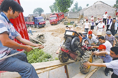 6月16日,河南南阳淅川县滔河乡凌岗村第一批115户406名移民,将搬到唐河县毕店镇凌岗移民新村的新家,开始崭新的生活。这也标志着南水北调河南省丹江口库区第一批大规模移民搬迁全面启动。第一批大规模移民,涉及淅川县10个乡镇、57个村、6.5万人,其中,出县安置5.9万人,整体搬迁村14个,规划安置区涉及平顶山、漯河、许昌、郑州、新乡、南阳等6个市地、25个县市区、63个安置点,搬迁距离最远的是仓房镇王井村,距新乡市安置地600公里,第一批移民搬迁共97个批次。 杜小伟 摄