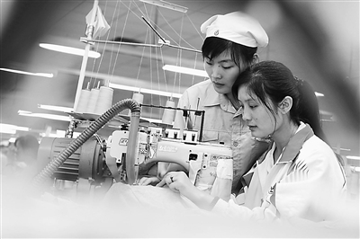 6月10日,山东即墨市第二职业中专的服装专业学生正在青岛即发集团学习缝纫技术。让她们高兴的是,这些学生已经被即发集团提前预定,实习结束后,将进入该企业工作。近年来,该市实行的按需施教“订单式”职业教育,不仅免除了这些职校生毕业后找工作的后顾之忧,也为当地企业提供了大量急需的技术工人。目前,全市职业学校在校生达到近万人,每年可以向当地企业输送3000名毕业生,职校生就业率达到了98%以上。任民 摄