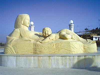 山西省大宁县发现的盗版《黄河母亲》大型雕塑。