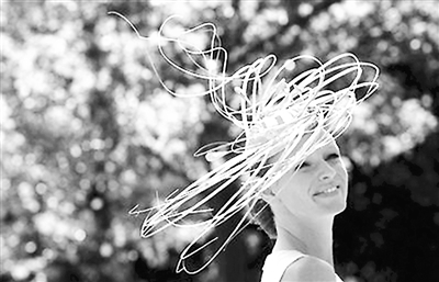 2010英国皇家赛马会从6月15日开始举行,一年一度的全球帽子竞艳盛会也就此展开。图为参加盛会的女士戴着独特的帽子。谢涛 供图