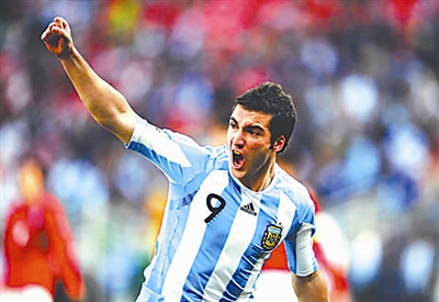 改变发生在去年10月的世界杯预选赛南美倒数第二轮比赛中——凭借伊瓜因的进球,处在被淘汰边缘的阿根廷队主场2比1战胜秘鲁队,保住了晋级希望。也就是在那场比赛后,马拉多纳终于重新认识了这位阿根廷媒体和球迷非常看重的“小飞侠”。通过世界杯前的一系列热身赛,技术出色、身体灵活的伊瓜因,终于占据了阿根廷队首发中锋的位置。