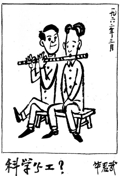 1949年底,华君武调到北京,先后担任《人民日报》美术组长、文艺部主任和中国美协的领导工作。建国后至“文革”前的17年里,华君武既创作国际时政漫画也创作社会生活漫画,最引人注目的是上世纪50年代末至60年代中期画的那一大批“人民内部讽刺画”。其中,有讽刺主观主义不进行调查研究、不顾客观效果的《公牛挤奶》、《科学分工?》、《无效劳动》等,也有讽刺社会上和学术界、文艺部门各种不良现象的《误人青春》、《永不走路永不摔跤》、《杜甫检讨》等。这些作品凸显了作者对生活的敏锐观察力和胆识,说出了当时人们想说又不敢说的话,有助于群众思考现实生活中的问题。